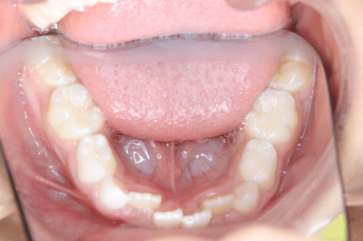 口呼吸をしていると前歯が前に出てしまい出っ歯になったりします。また、舌で歯を押す癖があると、歯が前の方に倒れていって隙間のあいた歯並びになってしまいます。