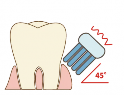 歯と歯茎の境目に、歯ブラシを歯茎に対して45度の角度で当て、丁寧に動かします。歯茎へのマッサージ効果や、歯周病予防にも効果的です。