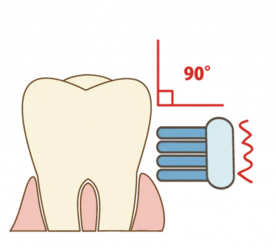 歯ブラシの毛先を歯の面にピッタリと垂直に当てた状態で、細かく小刻みに動かします。大きく動かしすぎると、汚れを溜めこんでしまうので気をつけましょう。
