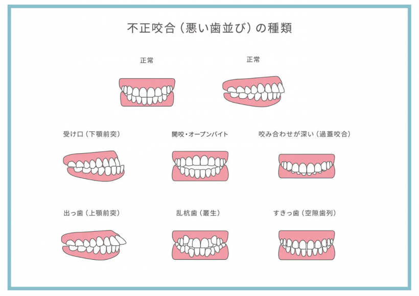 一口に噛み合わせが悪いといっても、噛み合わせが正常でない状態全てを指すので、その種類はたくさんあるからです。