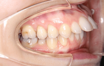 また、唇を噛む癖があるような場合にも、下唇によって上の前歯が前方に、下の前歯が後方に押され上顎前突になってしまいます。
