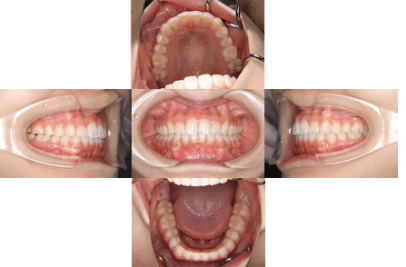 • 治療内容:顎が狭く、上の前歯が後ろに生えてしまい、ガタガタして上手く咬めない状態でした。幅を広くして、歯の角度を調整し、自然な位置に並べたので上手く咬めるようになりました。